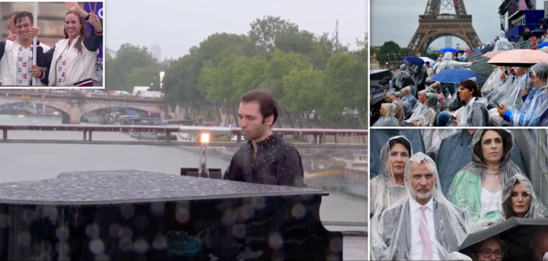 Hapja e Lojrave Olimpike 2024 në Paris nuk kishte shkëlqimin që pritej, prej shiut të pandalur dhe qiellit gri, që lanë disi në hije eventin në lumit Senë me rreth 300 000 spektatorë.
