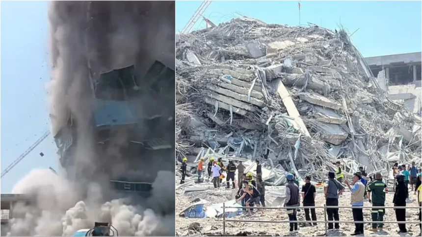 Video tronditëse ka treguar momentin kur punëtorët ia mbathën teksa një ndërtesë në ndërtim e sipër u shemb kur u trondit nga forca e tërmetit.