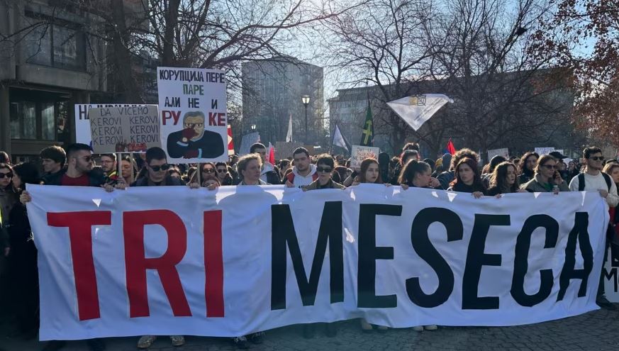 Një numër i madh studentësh dhe qytetarësh janë organizuar të shtunën për bllokimin e tri urave të Novi Sadit, fiks tre muaj pasi 15 persona janë vrarë si pasojë e shembjes së një strehe betoni në stacionin hekurudhor të këtij qyteti.