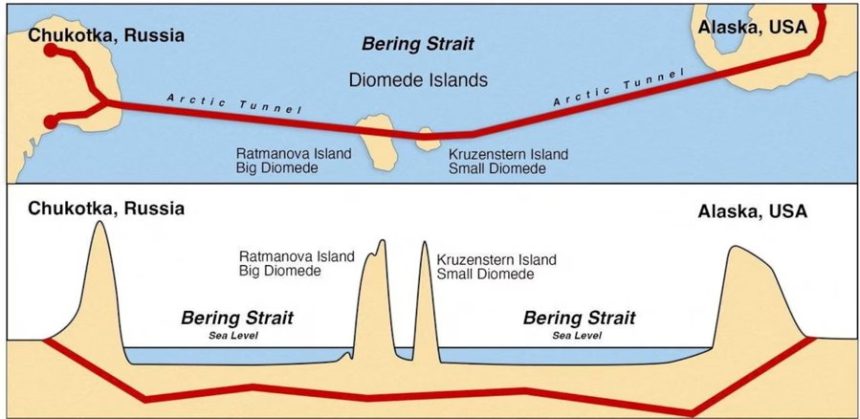 Ngushtica e Beringut, e cila është 82 km e gjerë në pikën e saj më të ngushtë, ndan rajonin Chukotka të Rusisë nga Alaska. Idetë për të lidhur dy pikat kanë ekzistuar për të paktën 150 vjet, me projekte të ndryshme të hartuara, por që nuk janë zbatuar kurrë.