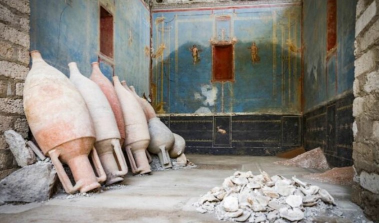 Arkeologët kanë zbuluar një dhomë blu të dekoruar në mënyrë të hollësishme, e interpretuar si një vend i shenjtë romak i lashtë, gjatë gërmimeve të fundit në Pompei.