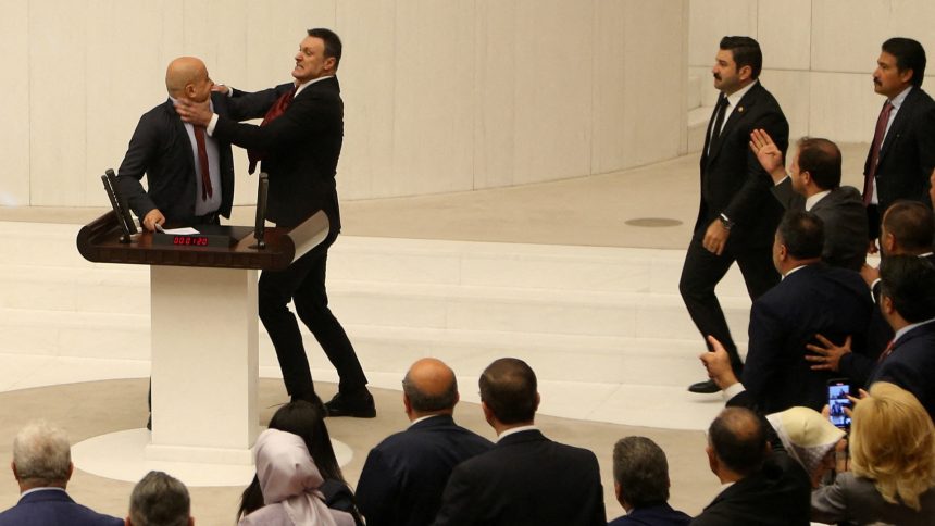 Në Parlamentin e Turqisë ka pasur një përplasje të dhunshme ditën e sotme, ku një deputet i opozitës u qëllua me grusht nga një deputet i Erdoganit.