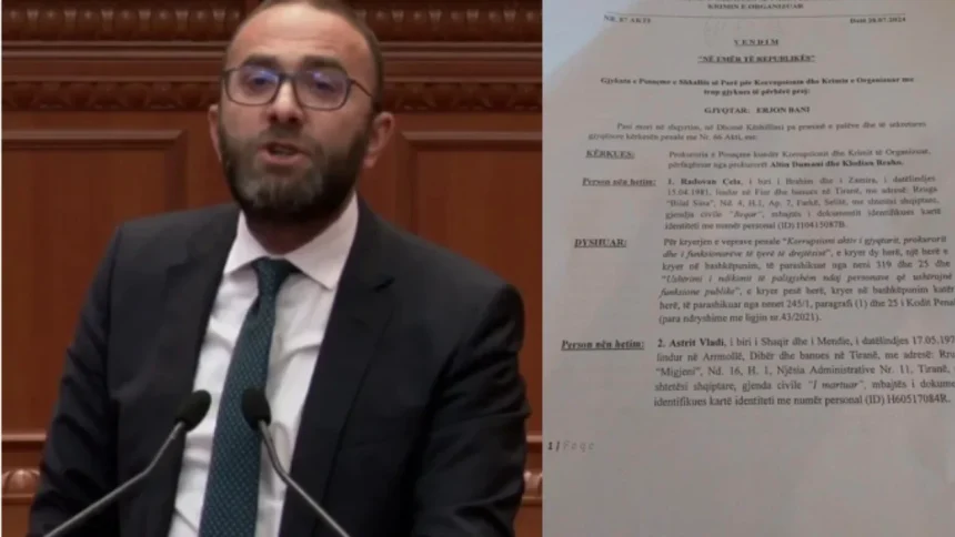 Ai ka zbardhur detaje të dosjes që sipas tij po mbahet sekret, ku thekson se janë të përfshirë politikanë, dy prokurorë të SPAK, prokurori Bledar Valikaj, bashkëshorti prokuror i Ermonela Felajt, komisionerja e Vettingut, ish gjyqtari Artan Gjermeni, etj.