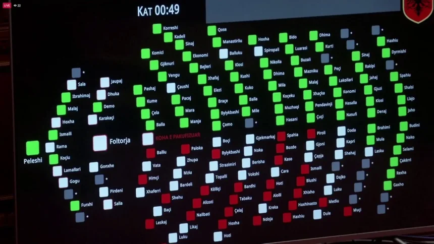 Më herët, maxhoranca ngriti kartonat e kuq për një interpelancë kërkuar nga opozita me kryeministrin Edi Rama dhe për futjen me procedurë të përshpejtuar të një projektligji që synonte zbutjen e efekteve nga rritja e çmimit të karburanteve.