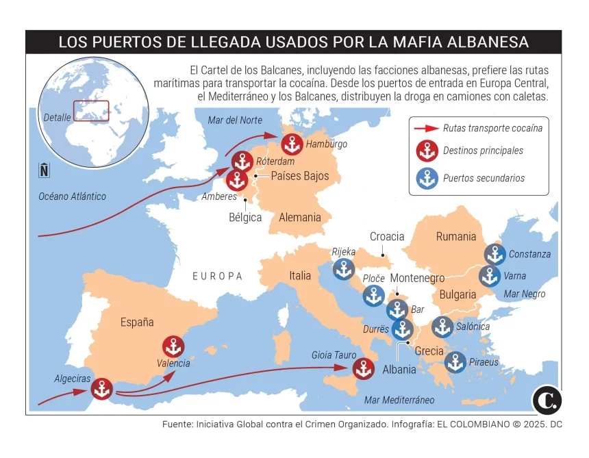 Rrugët e tyre detare zakonisht nisen nga portet e Guayaquil dhe Manta (Ekuador); Buenaventura dhe Barranquilla (Kolumbi); Maracaibo, Puerto Cabello dhe Carúpano (Venezuelë). Atje, ata kontaminojnë kontejnerë me banane, karkaleca deti dhe materiale industriale (çimento, rërë, ngjitës), të destinuara për terminalet në Mesdhe, Gadishullin Ballkanik dhe Evropën Qendrore (shih infografikun).